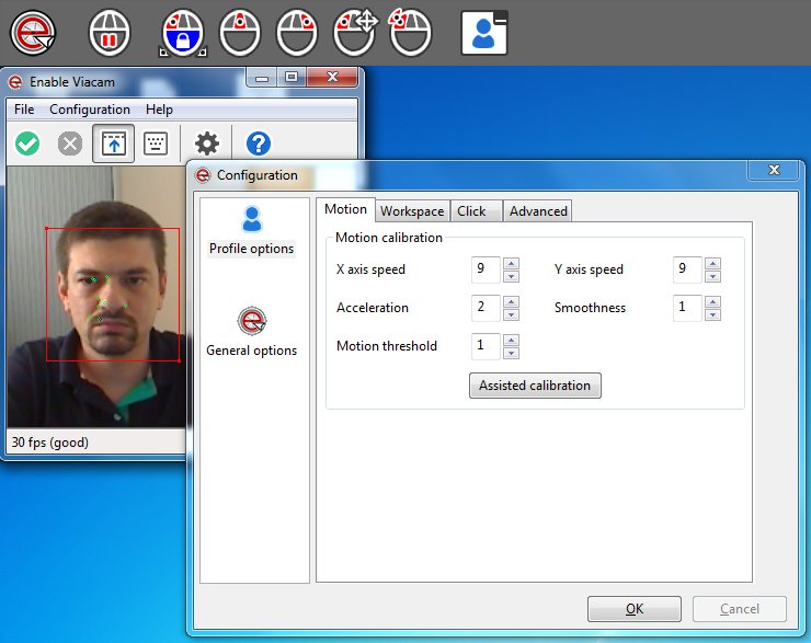 Capture d’écran de la configuration de l’outil Enable Viacam, outil utilisé par Loubnia.