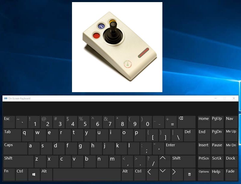 Illustration d’un joystick et d’un clavier virtuel similaire à celui utilisé par Johann.