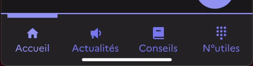 La difficulté principale vient du manque d’espace sur l’écran qui est encore plus accentué lors d’un zoom 200 %. On pourrait donc revoir la logique du composant en masquant le composant navigation bas de page avec les quatre rubriques dans un bouton “Menu" qui permettrait de plier/déplier les rubriques. Ce raisonnement est souvent présent dans un contexte web lors de l’affichage en version mobile.