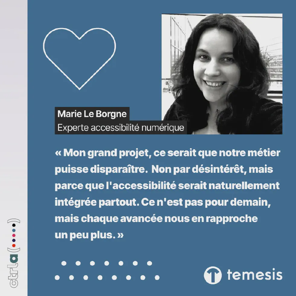 « Mon grand projet, ce serait que notre métier puisse disparaître. Non par désintérêt, mais parce que l’accessibilité serait naturellement intégrée partout. Ce n’est pas pour demain, mais chaque avancée nous en rapproche un peu plus. »